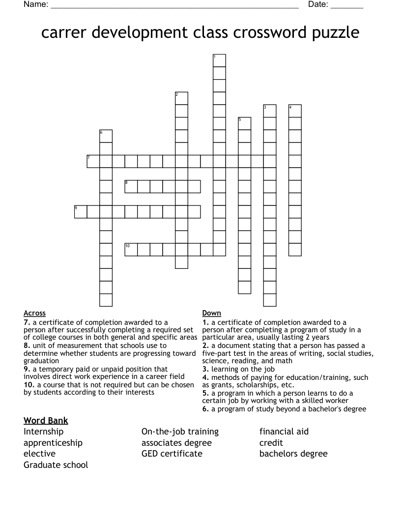 Carrer Development Class Crossword Puzzle WordMint
