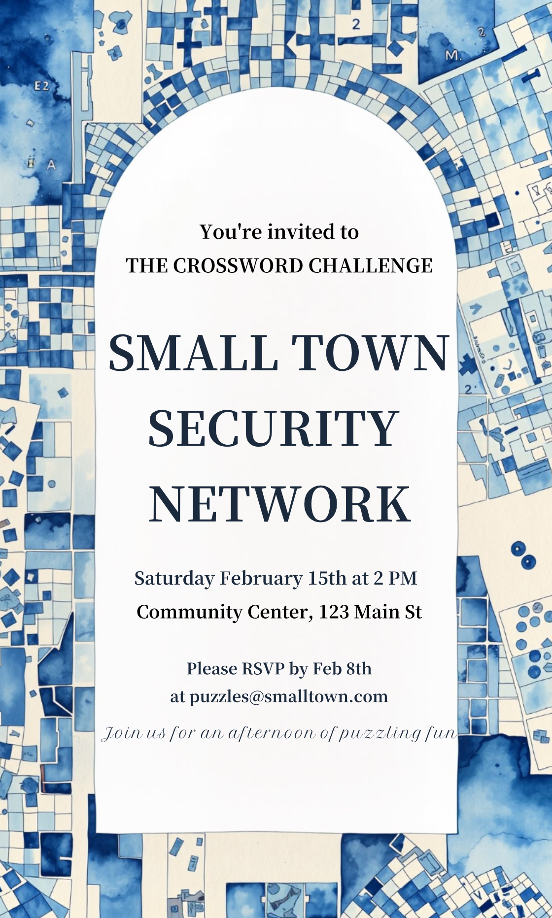 Small Town Security Network Crossword Challenge Invitation Template AI Designs By MolyPix AI