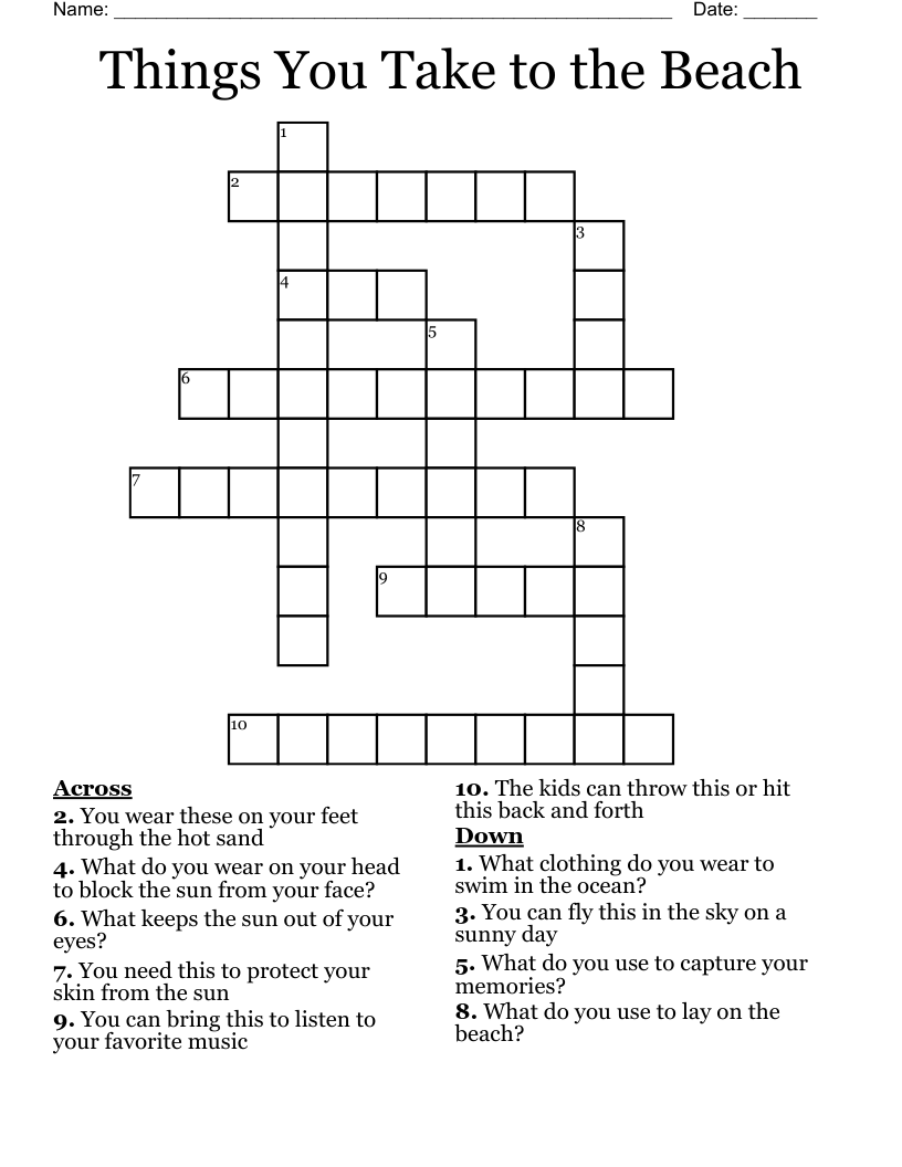 Things You Take To The Beach Crossword WordMint