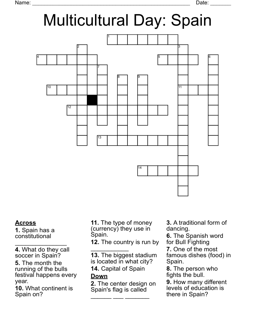 Multicultural Day Spain Crossword WordMint