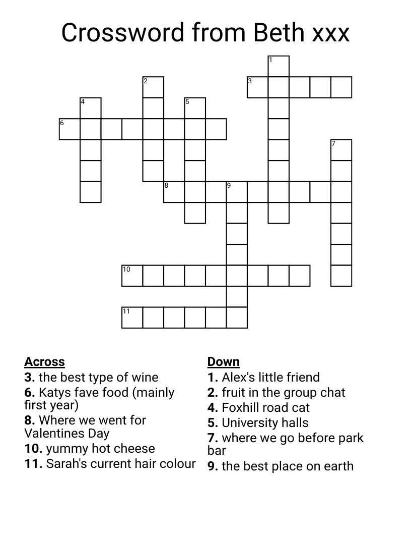 Crossword From Beth Xxx WordMint