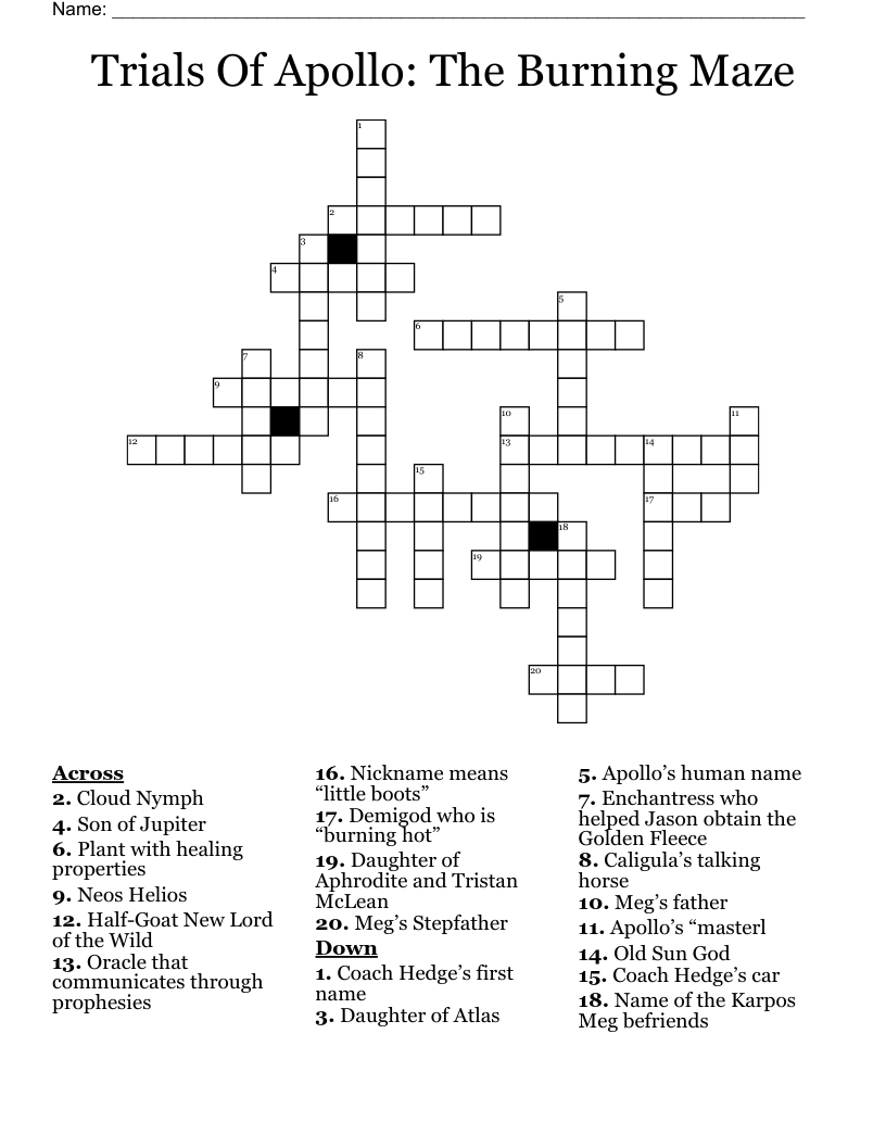 Trials Of Apollo The Burning Maze Crossword WordMint