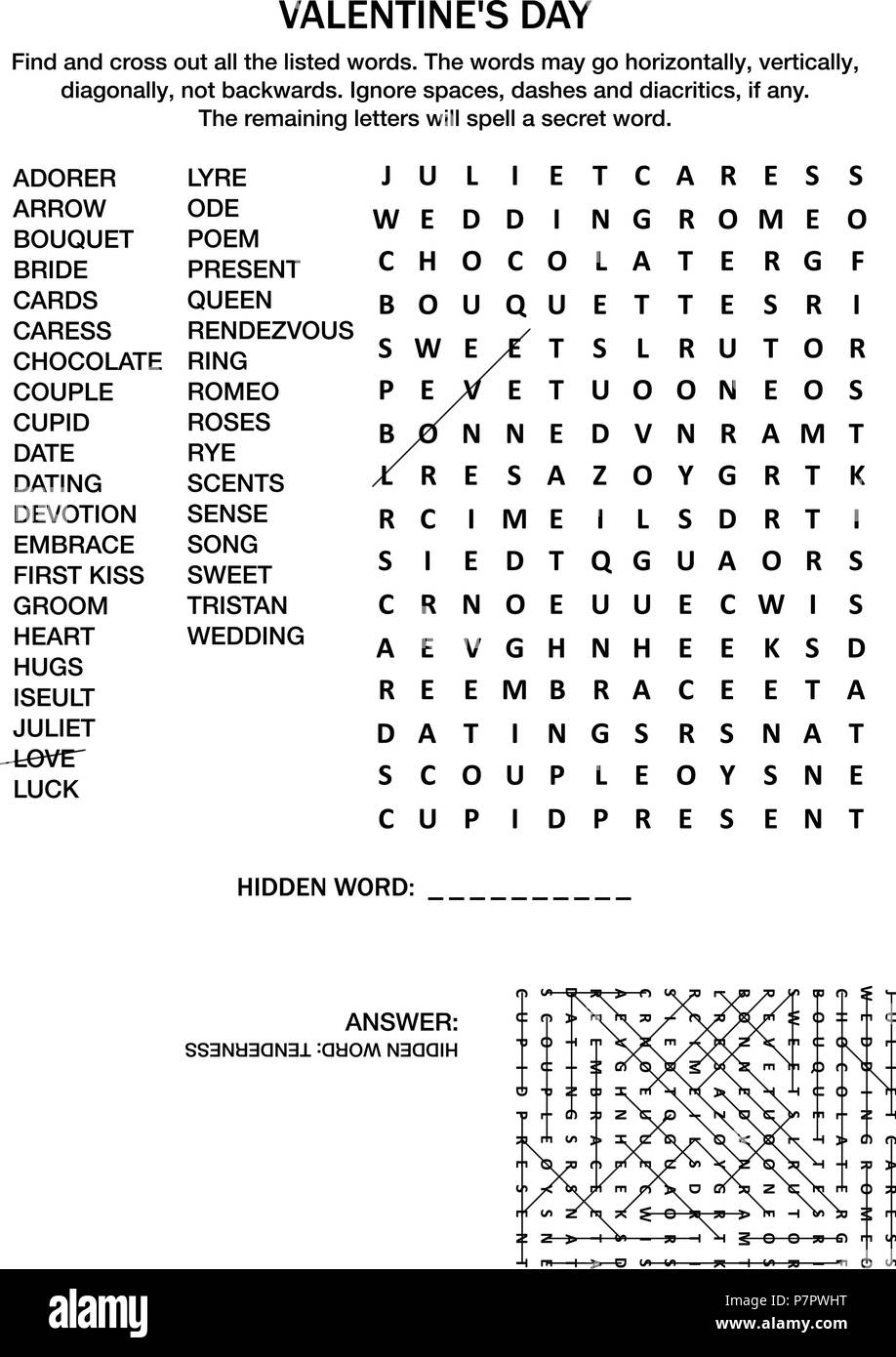 Valentine s Day Love Wedding Romantic Etc Themed Word Search Puzzle English Language Black And White Answer Included Stock Vector Image Art Alamy