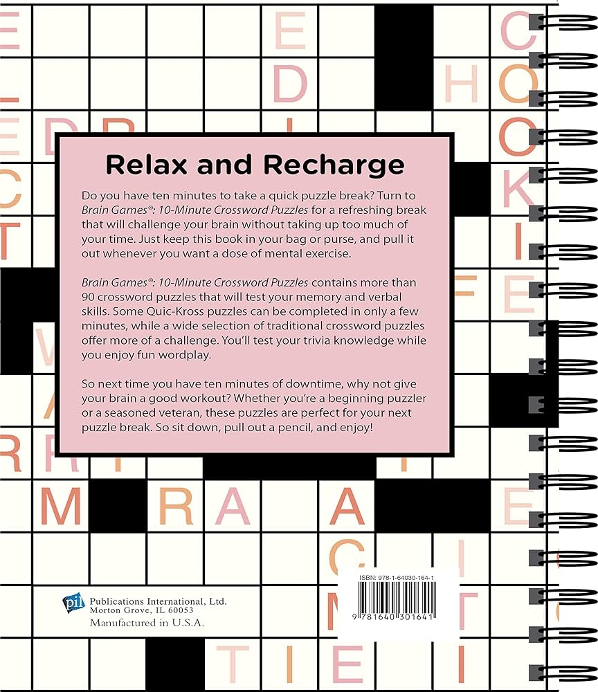 Amazon Brain Games 10 Minute Crossword Puzzles Pink Volume 2 9781640301641 Publications International Ltd Brain Games Books