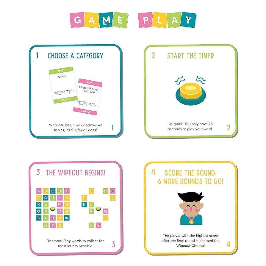 Amazon Word Wipeout Juegos Familiares F ciles De Aprender Para 2 A 6 Jugadores Juego De Palabras De Ortograf a De Ritmo R pido Para Noches De Juego Familiares Juego Divertido Para Adultos